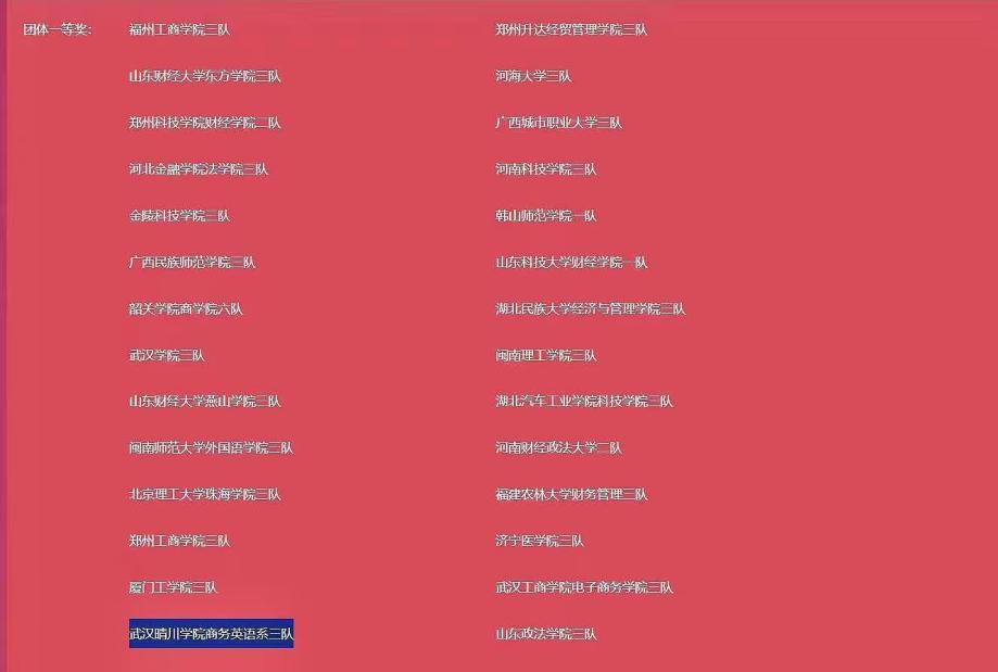 商务英语系近年来的人才培养成果喜人,专四通过率远超国内英语专业平均水平;坚持“以赛促学,以赛促教”的原则,学生在众多商务类、语言类及翻译类的比赛屡创佳绩。这些成绩离不开学校、学院各级领导的大力支持,商务英语系全体教师的付出以及学生们的努力。在今后的日子,商英全体师生会秉持初心,继续努力前行,争取再创辉煌。(通讯员:吴莎莎 张睿)
