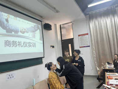 面对不同的礼仪,同学们分组进行角色扮演。在仪容仪表礼仪环节,同学们为模特画上精致的职场妆容;在仪态礼仪环节,同学们展现出优雅的体态;在接待礼仪环节,同学们模拟商务接待场景,为模拟客户提供热情周到的服务;在面试礼仪环节,同学们则模拟了面试的全过程,从简历准备到面试礼仪,同学们都认真对待,展现了良好的专业素养。