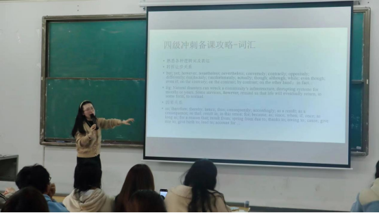 在各二级学院的积极配合与协调下,三场讲座座无虚席,场场爆满。三位老师首先强调了四级考试对于同学们的毕业、考研和就业的重要意义,希望同学们能充分重视英语四级考试,提前做好规划和准备。他们建议同学们及时了解考试信息,掌握正确的考试方法,并且科学精准地备考,以取得理想的成绩。